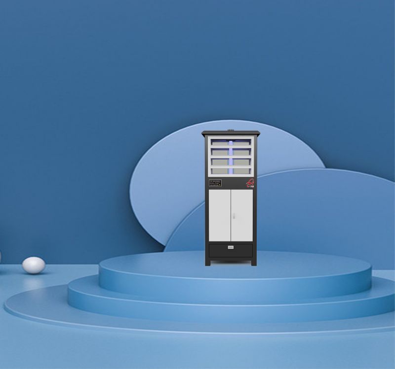 2.诱捕原理:紫外线诱虫灯发出令害虫敏感的光线致使害虫飞扑,撞击玻璃屏落到下端漏斗顺着打开的落虫通道滑进杀虫仓。