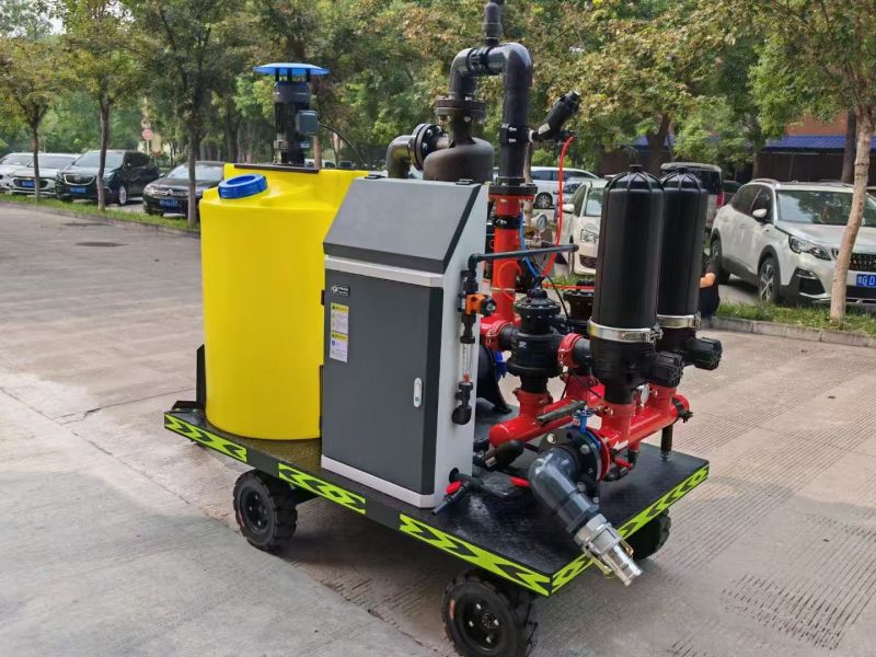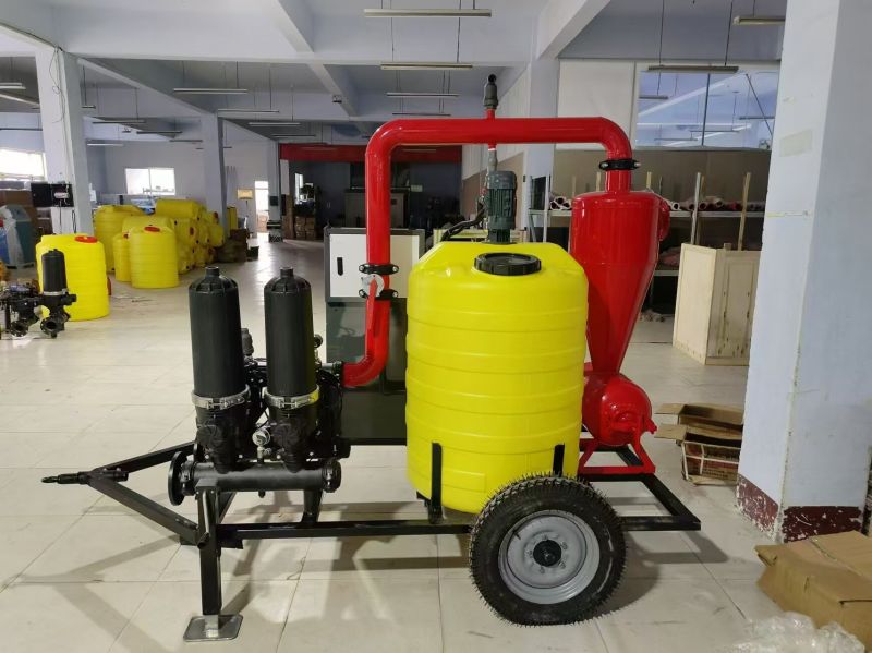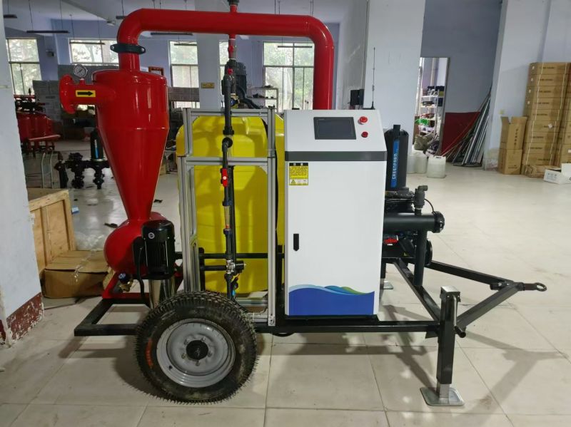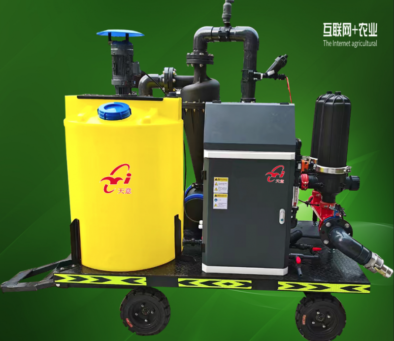 移动式水肥机又称便携式灌溉系统,设备由云服务平台、数据采集终端、水肥一体机、灌溉控制器、变频器、电磁阀、田间传感器等部分组成。可依据监测的土壤PH值、水分值的需要施肥规律,结合用户设定的配方及灌溉过程参数自动控制灌溉量、吸肥量、肥液浓度、酸碱度等水肥过程的重要参数,从而实现对灌溉、施肥的定时、定量控制,充分提高水肥利用率,实现节水、节肥,改善土壤环境,提高作物品质的目的。